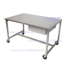 Bàn được chế tạo từ inox cao cấp với khung vững chắc, kết hợp hệ thống bánh xe linh hoạt. Các bánh xe đều có chốt khóa an toàn, giúp bàn đứng cố định khi không cần di chuyển.