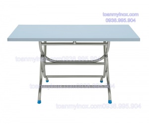 Đây là mẫu bàn kết hợp độc đáo giữa bề mặt inox và tầng song inox, mang lại sự linh hoạt trong sử dụng.