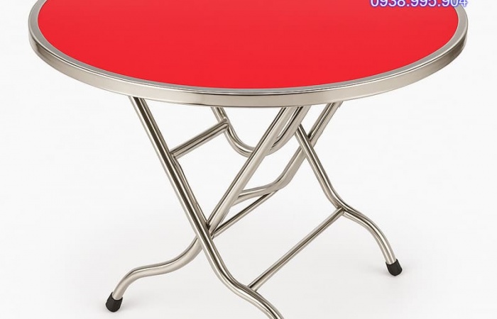 Phần chân bàn được thiết kế rời, có thể tháo lắp dễ dàng, thuận tiện cho việc vận chuyển và cất giữ khi không sử dụng. Chân bàn và khung chịu lực được gia công từ ống inox dày 1,2mm, đảm bảo độ chắc chắn, chịu tải tốt, không rung lắc trong quá trình sử dụng. Với chiều cao tiêu chuẩn tương thích với hầu hết các loại ghế tầm trung, cùng mặt bàn tròn rộng rãi đường kính 1m2, sản phẩm phù hợp cho các buổi tiệc, họp mặt hoặc sử dụng tại nhà hàng, quán ăn, gia đình đông người.