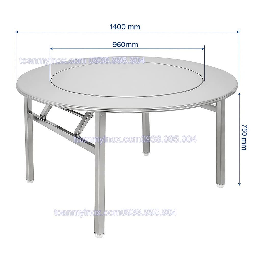 Bàn inox tròn 1m4 có mâm xoay 360°