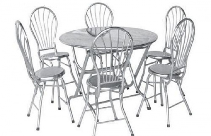 Bộ bàn inox 6 ghế tròn là loại sản phẩm thông thường dành cho phân khúc khách hàng tầm trung. Với kích thước mặt bàn 1,2m, sản phẩm này có thể phục vụ được cho 6 - 10 người cùng một lúc. Bên cạnh đó, do hướng đến nhu cầu sử dụng của các gia đình với quy mô vừa và nhỏ từ 6 người trở xuống, những quán ăn, nhà hàng lớn, cao cấp,… sản phẩm chỉ được thiết kế với 6 ghế dựa có lưng, đem lại sự sang trọng, quý phái cho không gian bày biện. Bên cạnh đó, độ cao chênh lệch giữa bàn và ghế cũng được thiết kế, tính toán rất kỹ lưỡng giúp người sử dụng có thể thoải mái ăn uống, làm việc, học tập với sản phẩm này. Chiều cao lưng ghế 0,5m cho phép người ngồi tựa lưng thoải mái sau thời gian dài tập trung. Bên cạnh đó, cả bàn và ghế đều có khả năng gấp gọn, giúp người dùng dễ dàng vận chuyển đồng thời tiết kiệm diện tích không gian cất chứa. Ngoài ra, bộ khung chịu lực của bàn được thiết kế với 4 chân bằng inox có đường kính 32mm, dày 0,8mm cho phép chịu được trọng lượng lên tới 180 kilôgram (kg). Trong khi đó sản phẩm ghế lại có 4 chân inox đường kính 25mm, dày 0,8mm cho phép chịu được người ngồi có trọng lượng lên tới 140kg.
