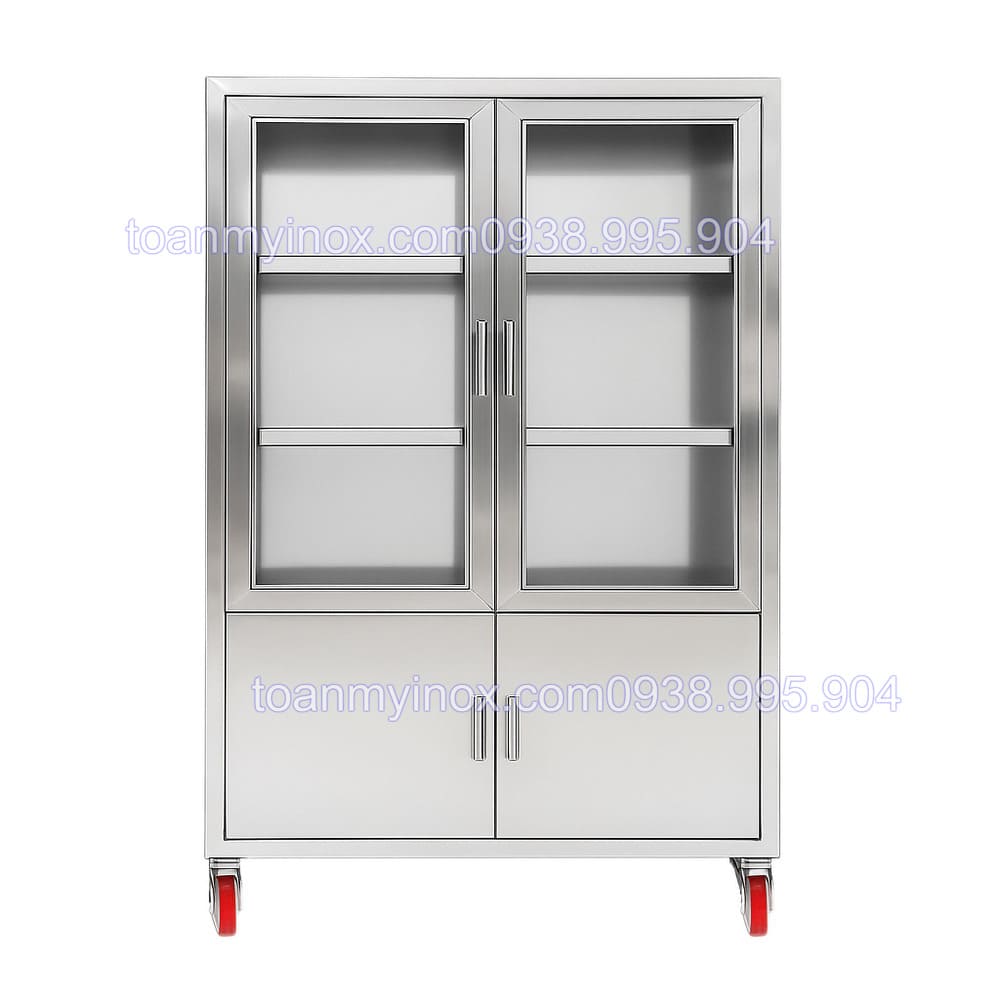 Tủ inox có bánh xe được thiết kế với khung inox chịu lực chất lượng, chống gỉ sét và bám bẩn, bền bỉ trong mọi môi trường. Tủ có cấu trúc chắc chắn, nhiều tầng chứa đồ và hệ thống bánh xe xoay linh hoạt giúp di chuyển dễ dàng, tiết kiệm công sức. Bánh xe có khóa an toàn, đảm bảo tủ đứng vững khi cần cố định. Sản phẩm được sử dụng trong y tế, công nghiệp, phòng thí nghiệm hay nhà máy để lưu trữ và vận chuyển dụng cụ gọn gàng, sạch sẽ.