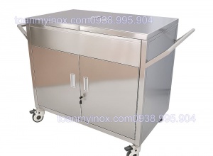 Tủ inox đẩy vật dụng được thiết kế chuyên dụng để vận chuyển và cất giữ các dụng cụ, vật tư trong môi trường y tế và công nghiệp. Sản phẩm làm từ inox cho môi trường y tế - công nghiệp, bền chắc và dễ vệ sinh, đảm bảo tiêu chuẩn an toàn và vệ sinh cao. Với cấu trúc 2–3 tầng rộng rãi, tay đẩy tiện lợi và bánh xe di chuyển linh hoạt, tủ giúp tiết kiệm thời gian, giảm sức lao động khi di chuyển nhiều vật dụng. Thiết kế chắc chắn, tải trọng lớn, phù hợp sử dụng trong bệnh viện, phòng mổ, phòng thí nghiệm, nhà máy sản xuất hoặc khu vực chế biến thực phẩm.
