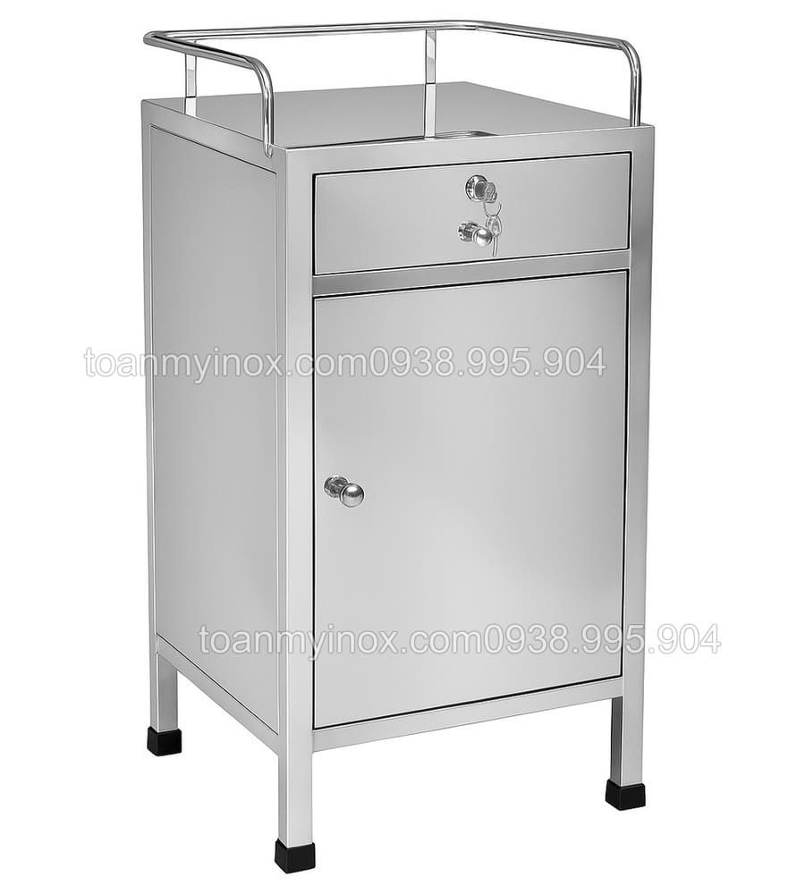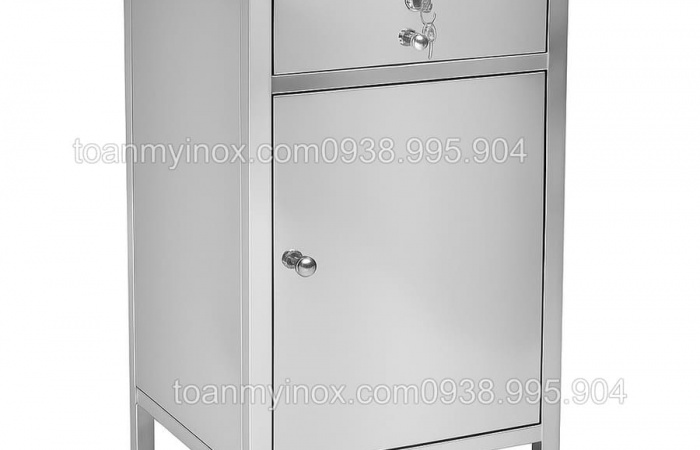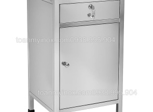 Tủ inox y tế đầu giường được sử dụng trong bệnh viện, phòng khám và cơ sở y tế, giúp cất giữ thuốc, dụng cụ y tế hoặc vật dụng cá nhân cho bệnh nhân. Tủ được sản xuất từ inox dành riêng cho môi trường y tế, kháng khuẩn, hạn chế bám bẩn và dễ lau chùi, đáp ứng tiêu chuẩn vệ sinh nghiêm ngặt. Thiết kế nhỏ gọn gồm 1 ngăn kéo phía trên, 1 khoang chứa có cánh mở bên dưới và mặt tủ phẳng tiện đặt thiết bị y tế. Các chi tiết được gia công tỉ mỉ, bo tròn góc cạnh, bản lề và tay nắm inox chắc chắn, sử dụng êm ái. Sản phẩm bền bỉ, thẩm mỹ, phù hợp cho mọi không gian y tế, giúp quản lý vật dụng ngăn nắp, an toàn và tiện lợi.