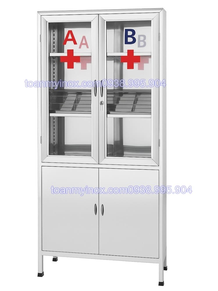 Các chi tiết như bản lề, tay nắm đều được gia công tỉ mỉ, chắc chắn, vận hành êm ái. Sản phẩm thích hợp cho bệnh viện, phòng khám, trạm y tế, hoặc phòng y tế tại công ty, trường học, giúp lưu trữ thuốc an toàn, khoa học và đảm bảo tiêu chuẩn vệ sinh y tế.